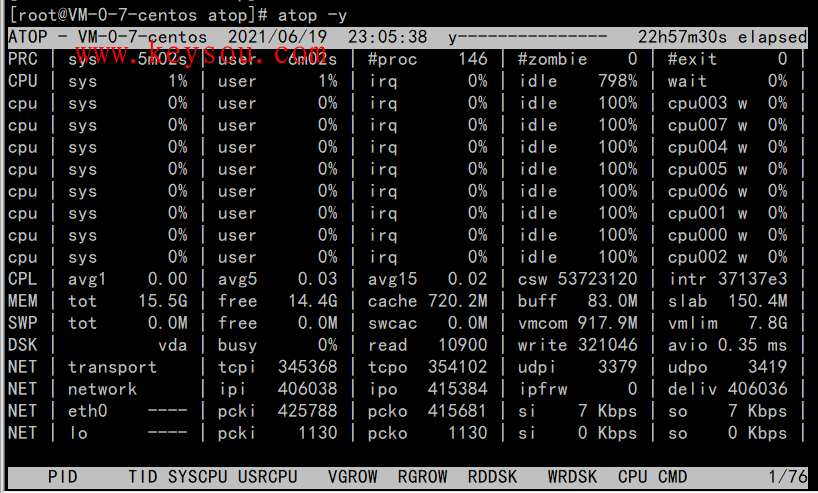 Linux 系统性能监控工具(实时监控系统性能、资源、进程并检查资源利用率)—atop